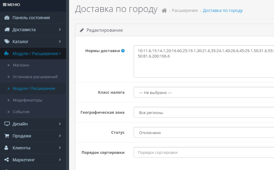 Как добавить/удалить стандартные модули доставки на сайте на Opencart
