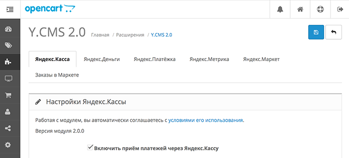 Настройка Яндекс.Кассы и других компонентов Y.CMS