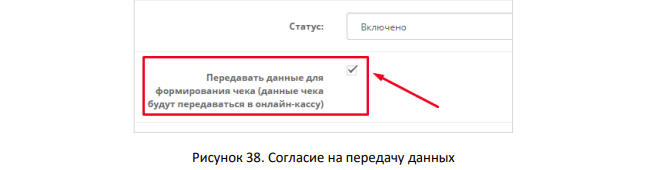 - Выбрать пункт «Передавать данные для формирования чека» в настройках модуля.