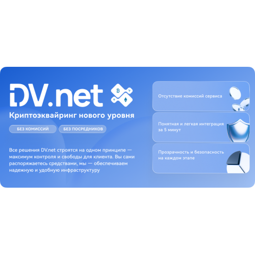 DV.net – это некастодиальный процессинг. Только вы контролируете кошельки, private keys и seed-фразы. Мы не храним средства и не вмешиваемся в их движение.